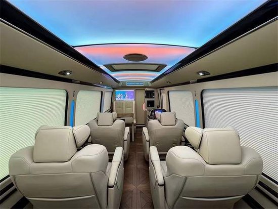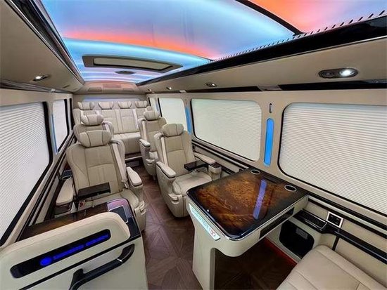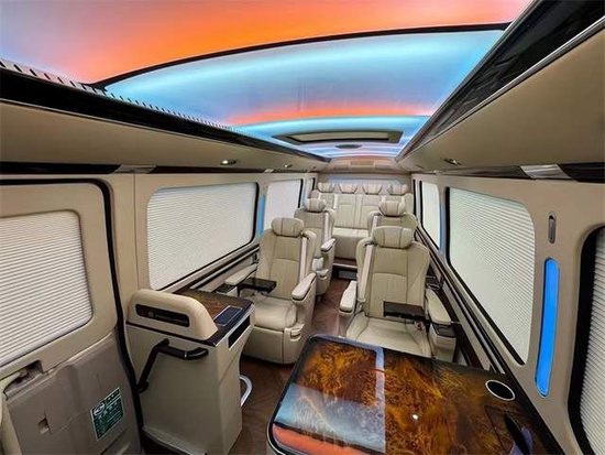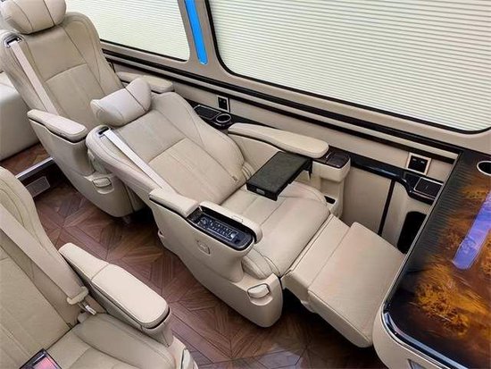 丰田考斯特改装商务车舒适的座椅再配备上高档的办公桌,办公桌加桃木和真皮的装饰,满满丰田考斯特改装商务车充分满足了商务办公的需要,更加能够提高 满满丰田考斯特改装商务车的档次感。华通丰业丰田考斯特内饰改装进口纯羊毛航空地毯、真皮桃木办公桌及秘书桌、酒柜、隐藏式雨伞柜、220V电源插座、空气净化器、电动踏板、四人联体电动沙发床等都是10座出色的亮点。在行驶途中,车内的设施,既可以移动办公也可以休闲娱乐。