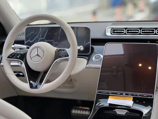 23款奔驰S500内饰设计就像一座移动的总统套房,相当的豪华。中控部分搭载了双屏设计,12.8英寸的中控大屏以及12.3英寸的悬浮式行车电脑屏,配上米色的内饰设计,颜值感很出众。此外,车内还使用了HUD投影显示以及高亮的钢琴烤漆面板,将科技感与时尚感结合得相当到位。