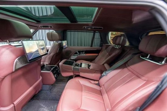 内饰方面,照明迎宾踏板带SV字样,体现了英伦豪华SUV的高水准,13.7英寸的液晶仪表盘+13.1英寸的中控液晶屏,科技感十足,车机系统是InControl智能驭领2.0系统,支持GPS导航,蓝牙,carpaly/carlife以及35个扬声器的英国之宝音响,前排手机无线充电。