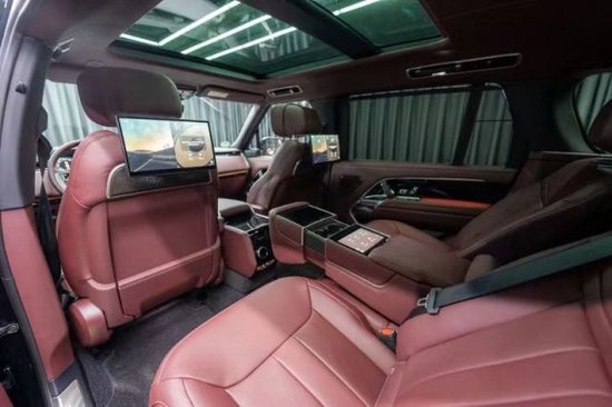 路虎揽胜 (配置|询价)进气格栅设计得更为精致,两侧为智能数字大灯带流水式转向灯,车门凹面处理非常锋利,SV奢雅主题外观套件,SV徽标,都是这台车独有,前后23英寸多辐亮光熏黑色钻石切割铝合金轮圈,带黑色制动卡钳,尾部造型圆润饱满,条形状的尾灯,变得非常有特色。