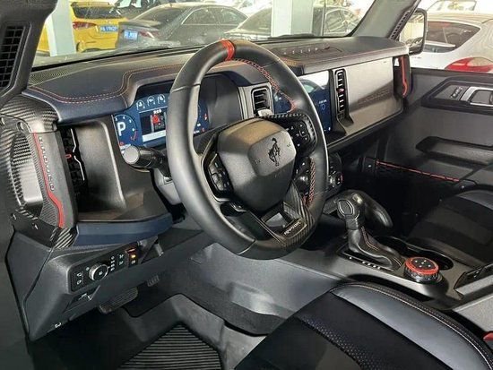 2022款福特Bronco烈马猛禽版3.0T的方向盘额外添加了碳纤维装饰。