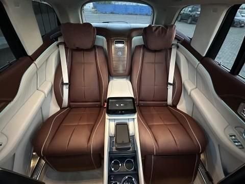23款奔驰迈巴赫GLS600提供四座布局,四座车型第二排独立座椅相比普通版GLS更加靠后,并且带有巨大的腿拖,其后排座椅最大倾斜角度大43.5度,后排腿部空间最大达1.34米。中央由冰箱、控制台、储物空间和手机无线充电台等进行贯穿,呈现出类似于迈巴赫S级 (配置|询价)一样的头等舱设计。