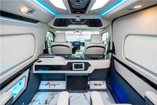 丰田海狮豪华版在车内顶部配备星空顶灯,这种灯光不仅亮度更高,而且可以根据需要任意调节灯的颜色,美观大气而且十分的实用。当然除了顶部的空客等,华通丰业丰田海狮车内还配备了很多的灯光包,例如迎宾LOGO灯、迎宾地脚灯、立柱彩灯、空客顶灯、压条灯、阅读灯等等。丰田海狮奢华定制版车内窗帘全部升级为方便使用的电动升降百褶窗帘。