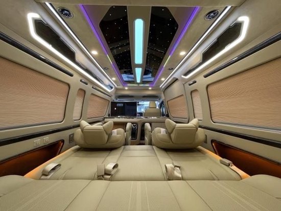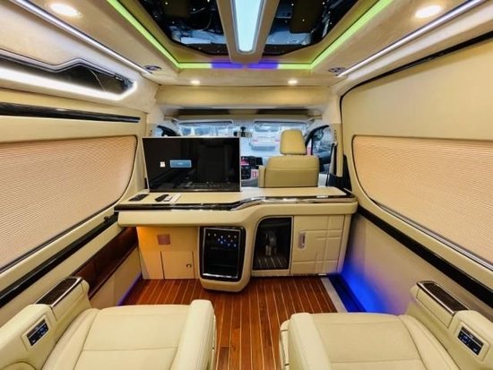 基本上9座的改动座椅排列的是2.2.2.3的设计,其中4张座椅为高级的航空座椅,座椅加热。通风。座椅按摩以及腿托,可以说是功能齐全了,也可以安装进口原装的埃尔法座椅,内饰可以加装全真皮的包覆,这样也可以方便您的日常打理。