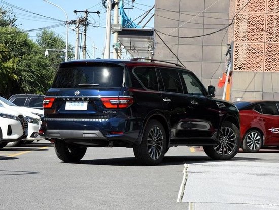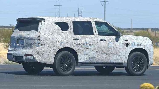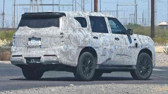我们从这款车的侧面上看,仿佛又看到了英菲尼迪QX80 (配置|询价)的感觉,事实上,这款车依旧与新英菲尼迪QX80共享平台和技术,并且同步采用全新的平台。两款车在几乎上几乎通用!与前脸一样,侧面上也采用了相同的设计,设计有腰线,但也只是点到为止,而且腰线的位置更靠上,这样侧面上的整体性就都能凸显出来,轮眉的设计已经进一步简化,但丝毫不会影响整部车的气场。尾部上,相比上代版本,尾灯再次简化,中间由一条LED灯带连接,两侧则是方形的尾灯。后包围的布局与新款QX80完全一致。所以就这款车而言,确实会有种“串台”的感觉。
