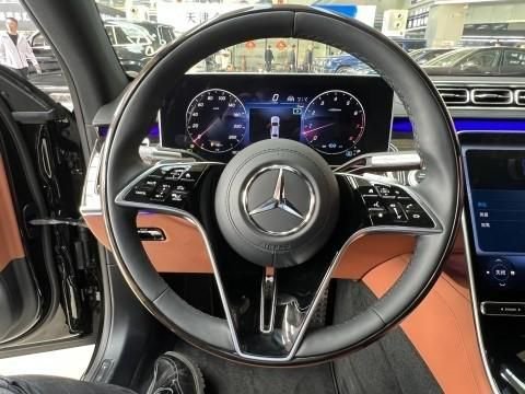 23款奔驰S580内饰方面走的是科技路线豪华感十足,新车采用了三幅式的全新造型的方向盘,新车的中控台上采用了钢琴烤漆面板装饰,上面采用了多条横向的白色装饰条点缀。采用了悬浮式的纵置大屏,液晶仪表采用了悬浮式的风格,全新奔驰S级 (配置|询价)还采用了隐藏式门把手,当驾驶员携带钥匙接车辆后,门把手会自动弹出,同时门把手内部还写有梅赛德斯奔驰的英文标识可见细节处理得非常到位。