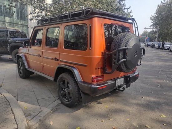 2023款奔驰G400D车尾仍然采用了后背的备胎设计,但不再布置在尾箱门上,而是通过支架布置在车体上。奔驰G400d也有着足以征服各种路况的本领。而这些正是奔驰G诞生的最初目的。平实的表面和简约的直线赋予了G级车独特的风格,这是建筑设计的包豪斯流派所倡导的“功能决定形式”的设计典范。