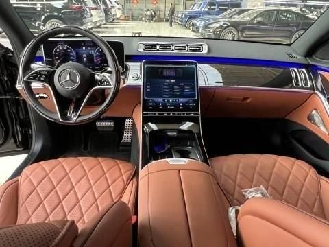 23款奔驰S580内饰方面走的是科技路线豪华感十足,新车采用了三幅式的全新造型的方向盘,新车的中控台上采用了钢琴烤漆面板装饰,上面采用了多条横向的白色装饰条点缀。采用了悬浮式的纵置大屏,液晶仪表采用了悬浮式的风格,全新奔驰S级 (配置|询价)还采用了隐藏式门把手,当驾驶员携带钥匙接车辆后,门把手会自动弹出,同时门把手内部还写有梅赛德斯奔驰的英文标识可见细节处理得非常到位。