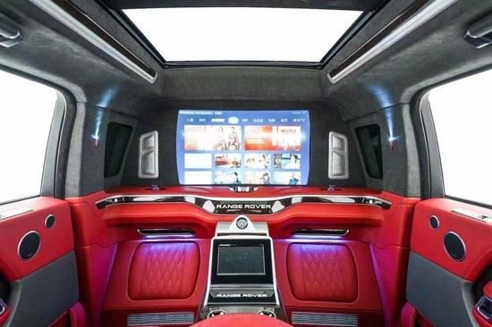 路虎皇家一号配有简洁但做工却非常考究的吧台,让您置身车内尽可享受舒适奢华的贵宾式待遇。全景天窗下,隔屏吧台搭载三星32寸液晶升降电视,MERIDIAN英国之宝环绕音响,秉承着高贵与简洁的设计宗旨,清晰重现各种声音,其品质可见出类拔萃。左右下方各9.7寸液晶显示功能屏,让视觉听觉与触控发挥到极致。第二个家可移动的家,也是第二个可以移动办公室!