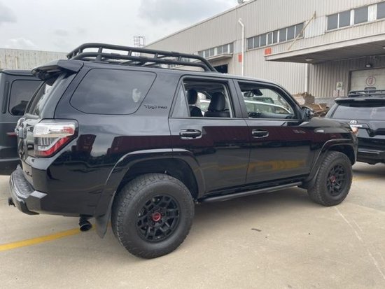 23款丰田超霸TRD PRO 黑/黑配置:FOX动态悬挂、360环影、雷达测距、车道偏离系统、并道辅助、TRD越野下护板、碳纤维内饰、TRD车身标志、TRD头枕标志、天窗、黑色篮式行李架、前排电动座椅、前排加热座椅、真皮座椅、17寸TRD专业越野轮、4种驾驶模式、后桥差速锁、蠕动模式、400W电源、自动大灯