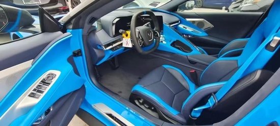 23款科尔维特C8敞篷 内饰部分采用了环抱式中控设计,中控台几乎将所有的控制按键和旋钮放置在了驾驶员右侧的面板上,并且全部朝向驾驶位置。此外,新车采用全液晶仪表盘与中控多媒体显示屏的连屏设计