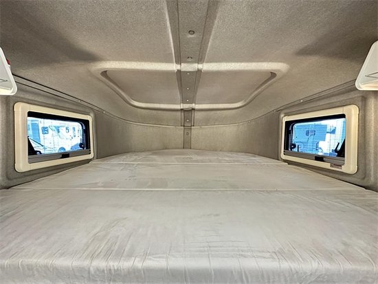 前部额头双人床,采用拓展床设计,更合理使用空间,抽拉排骨床,扩展后1700mmX1950mm,休息两人还是很宽敞的。额头床上方有顶置可开启天窗,左右两侧为对开窗,透气、采光、晚上赏月、拍风景。同时具备遮阳、防蚊功能。顶部有储物装置,还配置了12V和220V充电插口、阅读等,让房车生活更舒适、方便。