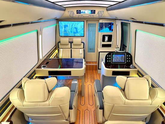 商务范,车内共有4个埃尔法的航空座椅,最有一排是联排的沙发床,埃尔法的航空座椅带有通风,加热,按摩,等等功能,以保证旅途中乘坐者的高舒适性。车内可以乘坐12个人,这对于接待用车和出行用车也是够了的,这个座位数也是中和了出行的各方面综合考虑,而选定的。
