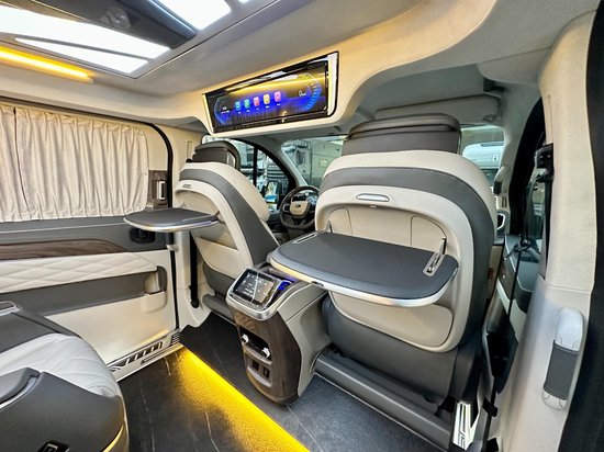 顶部是定制的高达顶灯,他有多款颜色可以随意的切换,明暗也可以自主调节。而且车内的无线充电也特别的多,在驾驶舱,后面的商务舱以及座椅上均有多处。商务舱的玻璃上均带有窗帘手动可以调节方面使用,而且能够很好地保护车内的隐私性除此之外,在中排的窗户上还单独的开了小床,以便于非常好的透气,再者就是随门儿洞的氛围灯上下车特别的具有仪式感。