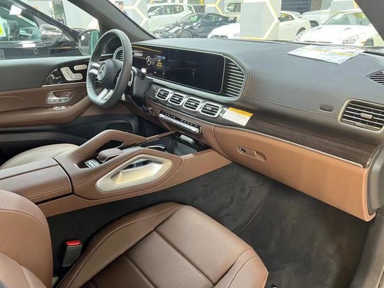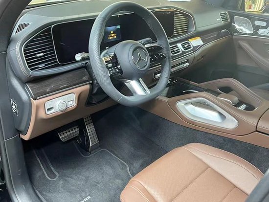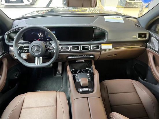 24款奔驰GLS450内饰方面,新车基本延续了现款车型的布局风格,不过在细节方面进行了调整,左侧换装了全新皮革材质包裹的三幅式多功能方向盘,前方是由液晶仪表盘和中控显示屏组成的超大一体式显示屏,并新增“实时越野路面影像”功能和新MBUX智能人机交互系统,科技感十足。用料方面新车运用了大量的软性材质覆盖,并有木纹装饰以及缝线点缀。配置方面,像后排隐私玻璃、外后视镜加热、防眩目内后视镜、丝绒脚垫、360度全景影像、四区自动空调、Burmester音响系统等均有配备。