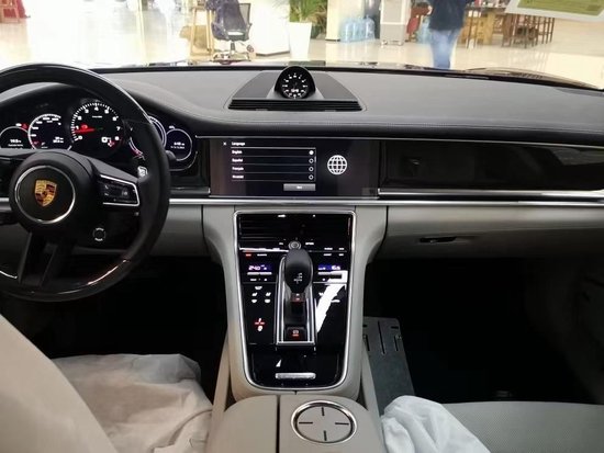 保时捷帕纳梅拉4S式仪表盘,具有液晶显示屏的行车电脑显示功能,超大液晶显示屏配有倒车雷达模拟图像。还有可以在每个弹簧中按需提供额外充气量的气动悬挂系统,可自动升起且角度可调的后扰流板,确保了主动空气动力学性能。