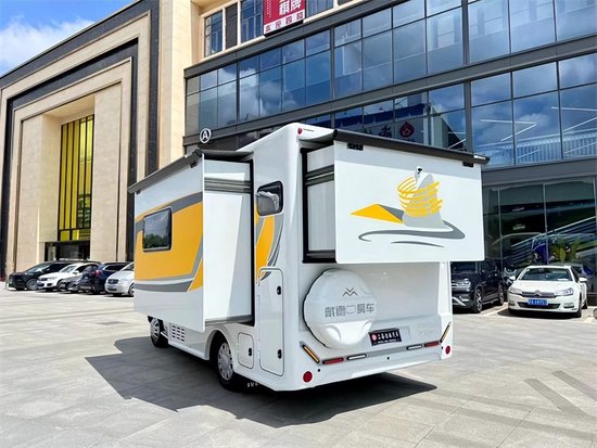 车身长度(长x宽x高)为5990x2490x3180mm,外观优雅大气、线条流畅,基于国产依维柯专业底盘打造,搭载3.0T柴油发电机,匹配8AT手自一体变速箱,最大功率170马力,峰值扭矩400牛米,荷载6人,C证可以驾驶。适合一家人一同出游。加宽后桥、定速巡航、胎压警报、双发电机的配置,使得整车平稳性极好。并提供丰富的智能舒适配置、一体化集控系统,以及丰富的影音娱乐系统。在车身左侧搭配外置遮阳棚,即可随时在蓝天白云的包围下享受悠闲时光