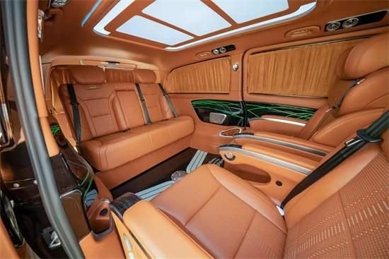 奔驰威霆改装后第二排座椅带有通风、加热、按摩、旋转、多向电动调节、豪华腿托、可折叠小桌板等功能。触摸的中控,使得座椅更具科技感,航空座椅的舒适感也很强。这款奔驰威霆的整体内饰也棕色为主,时尚大气不过时。车顶灯独特设计,氛围灯多彩可变,使得改后的奔驰威霆奢华感满满。第三排座椅也变成的三连排沙发床,可以180°放平,在旅途中可以轻松休息。升级后的奔驰威霆车窗也配有隐私窗帘,保证了车内的私密性。