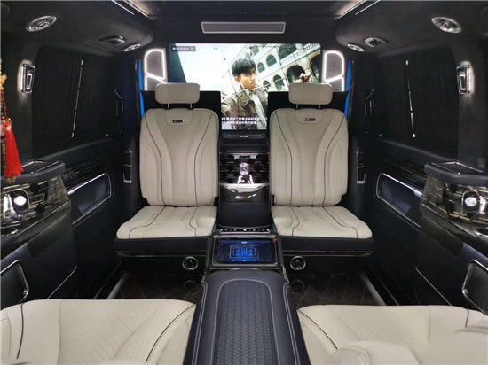 本台奔驰采用全隔断设计中间搭配液晶大电视可一件升降 升上去与前舱完全封闭 降下来可以清楚看到前面的道路以及前舱 搭配电视同时也有影音系统装载了娱乐影音方面的功能配置毫不夸张的讲,。配合全新装载的代表国际顶尖水准的柏林之声音响系统,为车内营造有如身临其境一般的环绕立体声,给驾乘者带来更高音质的听觉体验