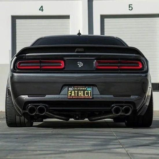 道奇地狱猫宽体红眼猫车尾上方增加的尾翼提升了它在高速的稳定性,而底部扰流器和大口径双出尾排更加彻底的彰显了它强大的性能。侧面的线条更多的是粗犷霸道的折线,很有肌肉感,配备了20寸的Group2合金轮毂,采用NTOS赛车轮胎,抓地力非常优秀。