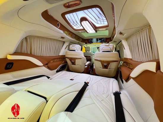 奔驰迈巴赫VS680改装整车加装了登车踏板、全车镀铬套件、LED迎宾踏板、LED灯饰及油漆同色,使整车更加尊贵霸气。竹苞松茂的时尚窗帘,8偏向电动调治按摩航空座椅,座椅阁下的文娱节制中隔屏,车内电器可任意一键操纵,可开启式全景天窗,在浩大的夜景中,共同“满天星”格调,好像在豪华的宫殿。