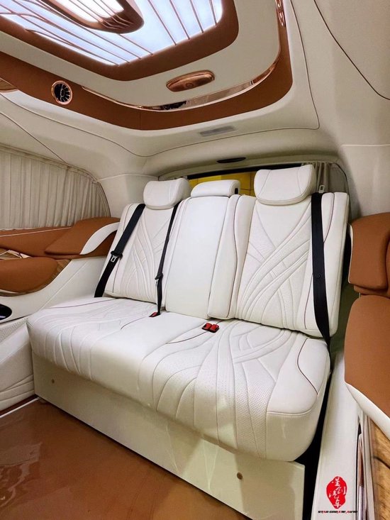 奔驰V260L改装七座商务车整车搭载豪华悬空高顶,顶部为业内最大自动全景天窗、采用双电动门、LED日间行车灯及大包围,外观设计稳重,科技感十足,车内空间更大,行动也就更加游刃有余。