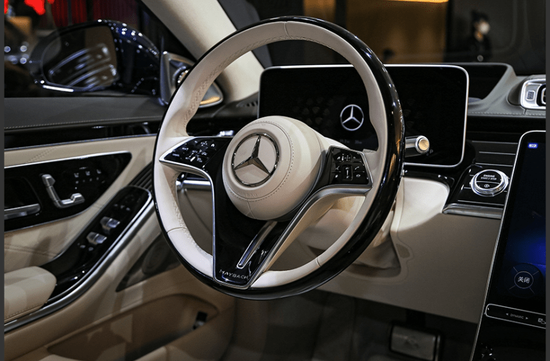 和蜻蜓造型方向盘相比,个人更喜欢这款鸥翼造型方向盘,它看起来精致轻盈,和迈巴赫S级的气质更搭。方向盘内圈为真皮,外圈为木饰,二者浑然一体。