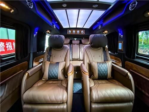 奔驰威霆商务车改装后的乘坐舱更加舒适,换上了高级商务航空座椅。该车采用七座不仅仅,在第二、三排格局合理舒适,第二排为航空级首长席座椅,带电动按摩、旋转、通风、加热等八项舒适性调节功能。第三排可以根据需要放平就是一张舒适的双人床。