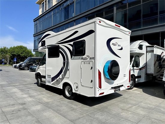 奇瑞瑞弗V800自行式C型房车,采用依维柯国产欧胜底盘,小海豚型大额头造型,整体白色车身搭配个性拉花造型,看起来轻盈时尚,整体外观没有特别出挑之处,但整车内部框架采用封闭式全铝合金主框架+美式房车电泳防腐副车架,双重保障更安全,当然瑞弗房车的技术支持全是由美国REV房车公司提供,除了车厢整体的保温隔热降噪,车厢顶部做了双层保温层,让车厢内部的环境更加舒适,动力方面,瑞弗V800 搭载Hi-Matic 8速自动变速箱,与变速箱匹配的F1C 3.0T柴油发动机,最大功率125Kw,最大扭矩400NM,车身尺寸:5990*2425*3200mm,最高时速120Km/h。蓝牌C照,荷载6人。