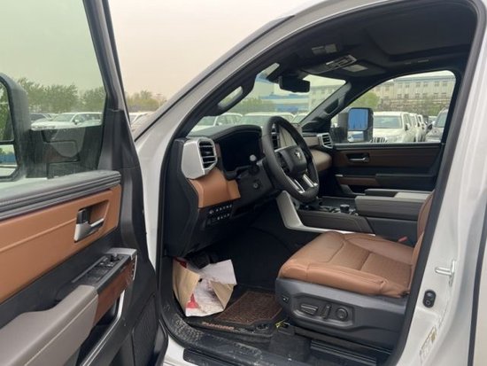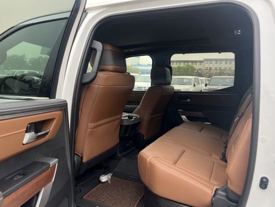 23款全新丰田坦途TRD版皮卡车内乘坐、后排座椅宽大,足以满足身高195cm的贵宾,第二排座椅可以完全折叠收起,为乘客提供更宽敞的腿部空间,已经达到了中大型车的水平,完全可以满足舒适乘坐的需求,部分特殊的装载给您的路途更添信心