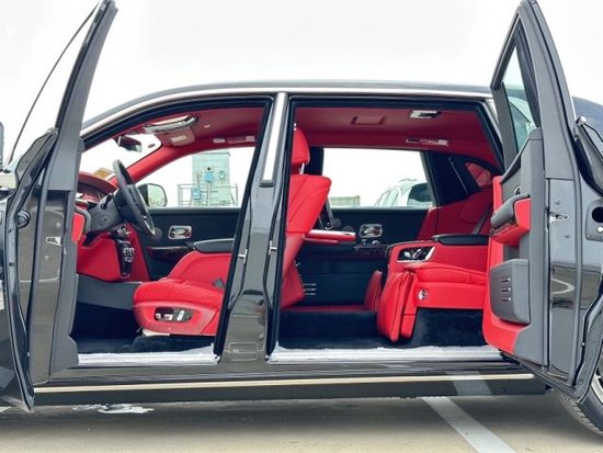 劳斯莱斯幻影后排电动折叠板,和后排影院系统被巧妙的隐藏在前排座椅的椅背后,只需轻触按钮,便可以自如收放桌板和影院系统,带来完美的剧院体验。后排中央固定扶手做了重点优化,其中国可容纳带有威度可以任意调节,这一设计让客户无需转头便可视线自如交流。