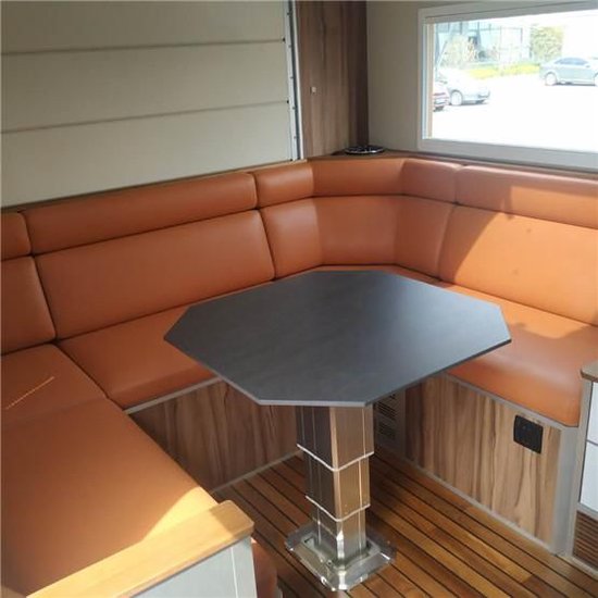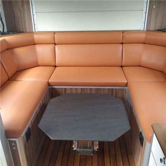 车内视听系统配置齐全。32寸网络液晶电视嵌入到壁柜中,DVD播放机、音响和卫星电视接收系统让旅行中和寂寞无缘, 车尾是一张双人吊床。这里还布置了隐私帘,保证了睡眠的私密性。
