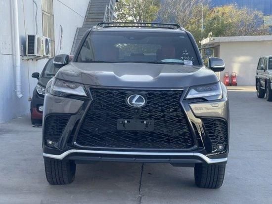 23款雷克萨斯LX (配置|询价)600新车整体变得更加宽厚,前脸尺寸巨大的纺锥形格栅尤其具有辨识度,外凸的银色横向格栅让前脸的视觉效果更加饱满,也成为了整个车头的视觉中心。而在格栅两侧,造型规整的头灯和深色进气格栅填充了前脸剩余的部分,新车头灯依旧由折线形的LED日间行车灯和三个LED光源构成,此外,带有凹槽的前发动机舱盖并不陌生,增添了整体的力量感。