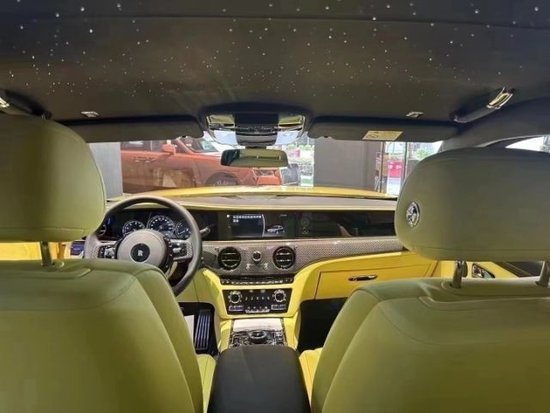 全新古思的内饰功能区域布局与老款车型类似,在此基础上加入了全新的设计,仪表盘、中控屏以及副驾前方的星光饰板形成了贯穿式设计。新车在副驾驶前方的星光饰板,以850颗星星环绕散发亮光的“Ghost”车名,只有在车辆启动时,发光的星簇及字标才全然可见。这背后是152支LED灯源、每个2毫米的光导以及90000余个激光蚀刻点才能产生的闪烁效果,从而呼应新车配备的全新流星车顶。
