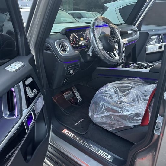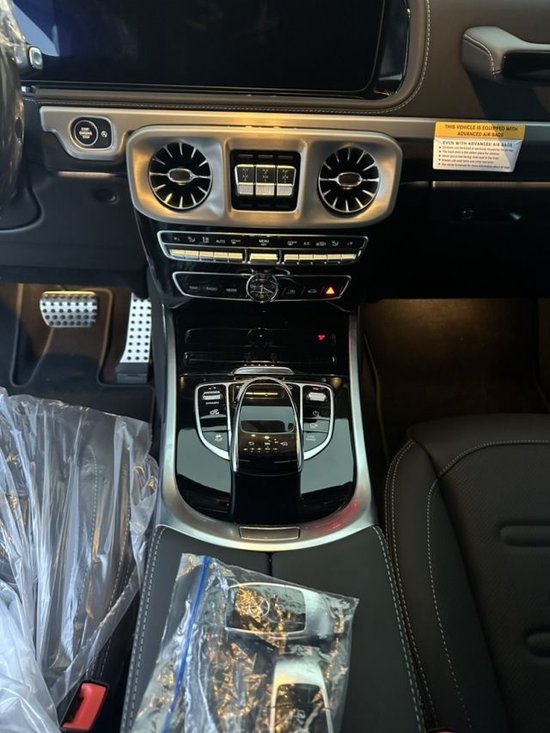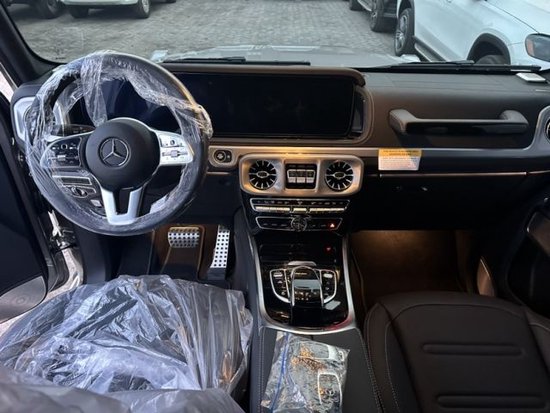 23款奔驰G400内饰采用深色的设计,布局设计也是熟悉的风格,在副驾驶的扶手上带有“STRONGER THAN TIME”的标志,再一次展现它特殊的身份, 配置上,多功能方向盘、双12.3寸液晶大屏、柏林之声音响、小鼠标、三把差速锁和天窗等其他高端配置功能依旧可见,奢华程度丝毫不减。