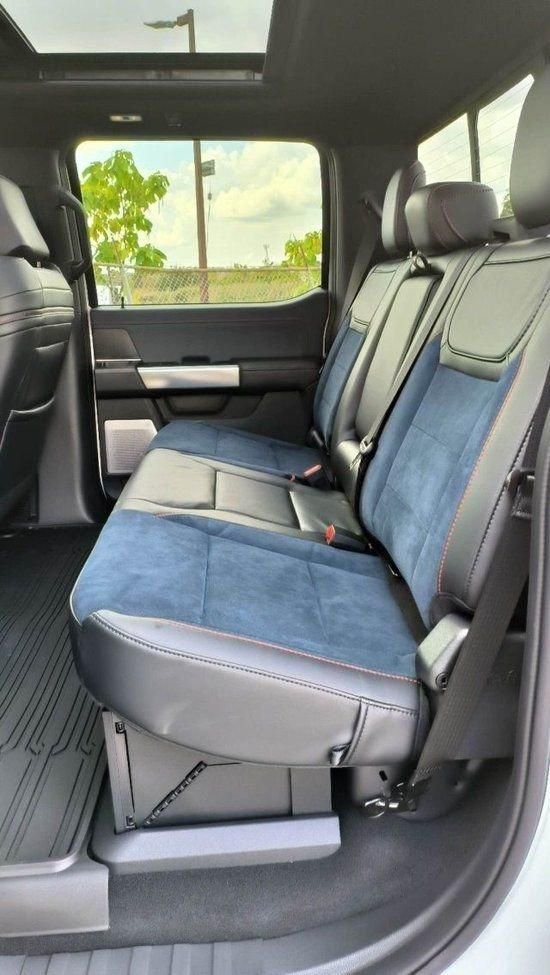 23款福特F150 猛禽后排的座位三个过分宽敞,乘坐四个身材高大的乘客绝对没问题。 这款车是为越野而生的车型,无论是发动机、悬挂系统这样的大部件,还是车灯脚踏这样的小细节都能满足越野爱好者的要求,带您穿越沙漠,翻山越岭,披荆斩棘。
