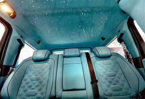 配置方面,迈莎锐G63 (配置|询价)与现款奔驰G63相比,少了后排安全气囊、前排膝部气囊、360度全景影像、自动泊车入位、低速四驱、智能遥控钥匙、远程启动、行李舱12V电源接口、可加热喷水嘴、车载空气净化器等功能,此外在原厂配置的基础上,增加了陡坡缓降、前排座椅肩部调节、后排座椅按摩等功能,这一番操作是对后排座椅配置进行了优化,但缺少了安全配置与智能科技配置,让人不思其解。订车微信:15522753999肖经理(同微信)