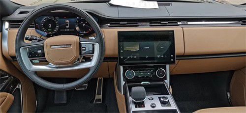 2023款路虎揽胜行政、内饰部分的功能非常强大,8英寸中控显示屏采用了双画面技术不仅清晰度极高,还可以同时观看不同画面互不干扰。新款路虎揽胜并且将许多功能键的功能用触屏的方式来实现极大的简化了中控台设计。同时仪表盘也引进了最先进的TFT技术,所有关键驾驶信息一目了然科技感十足。方向盘以及中控台全部采用牛津皮革包裹手感细腻的同时,内饰瞬间被提升好几个档次。