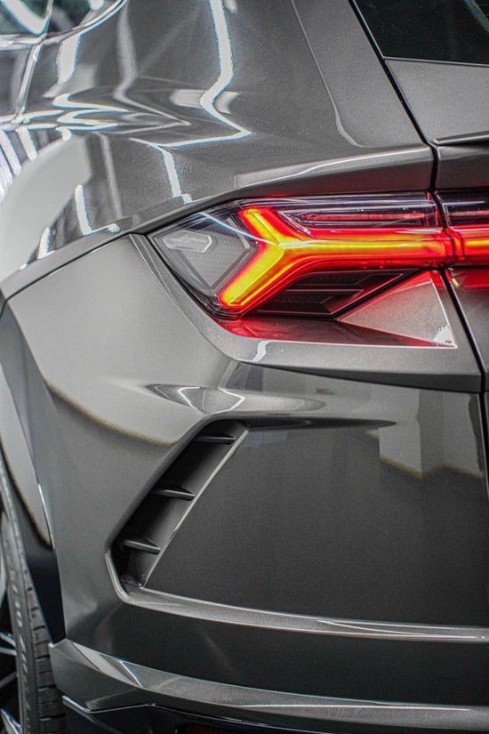 URUS尾部方面,兰博基尼采用了Y字形尾灯,扁平熏黑的设计弱化了尾灯的存在感,灯组中间标识,点亮之后非常具有辨识度。同时它的下包围的造型具有跑车化的风格设计,梯形的扩散器搭配双边共四出的排气具有非常强的视觉冲击力。