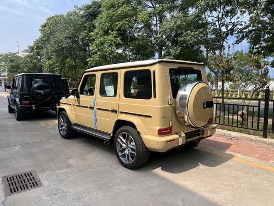 奔驰G63 (配置|询价) 23款 韩版 配置:GT按键,21英寸AMG10辐轻合金轮毂;红色卡钳,红色安全带,前/后排座椅加热;前座椅通风;前排座椅按摩、多轮廓座椅、独家钢琴漆装饰;天窗;3区空调;氛围灯、Burmester音响系统;带 361°摄像头的停车包;宽屏;多功能真皮加向盘;多光束LED大灯;主动车道保持辅助;主动刹车辅助;主动距离辅助系统;注意力监测;主动泊车辅助系统;车道保持辅助;预安全防护系统、后拖钩