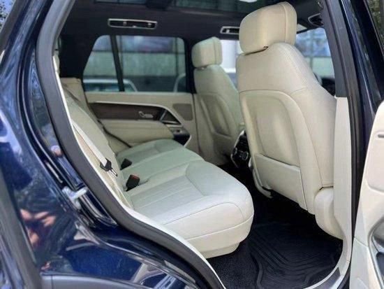 23款美规路虎揽胜 (配置|询价)行政3.0T 汽油 P400 SE标轴 蓝/米 选配:方向盘加热、21寸轮毂、拖车包、乌黑内饰、黑耀外观套件 配置:360度环影,电吸门,无线充电,13.1寸触摸屏,电动折叠防炫目后视镜,内后视镜防炫目,电动多功能方向盘调节,脚感电尾门,温莎打孔真皮座椅,前后座椅加热,四区空调,英国之宝音响,底盘升降,空气悬挂,盲点辅助,并道辅助,下坡辅助,无钥匙进入,隐藏无痕门把手,LED大灯,智能卡,全景天窗,二代地形,隐私玻璃,雷达测距,后轮7.3度转向。