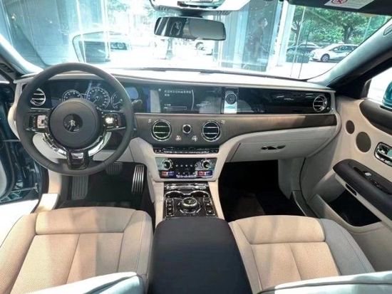 23款劳斯莱斯古斯特纯手工打造的内饰,处处都体现着精致感,由2000名工人,经过60双手,花费至少20天打造。三辐方向盘尺寸适中,握起来很舒服。控台配有一块石英表),看起来很复古,与劳斯莱斯车型的高贵相互映衬。中控台配备了10.25英寸显示屏,集成了导航、多媒体、蓝牙电话、行驶信息等。通过类似iDrive的旋钮区域控制,也带有手写功能。