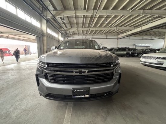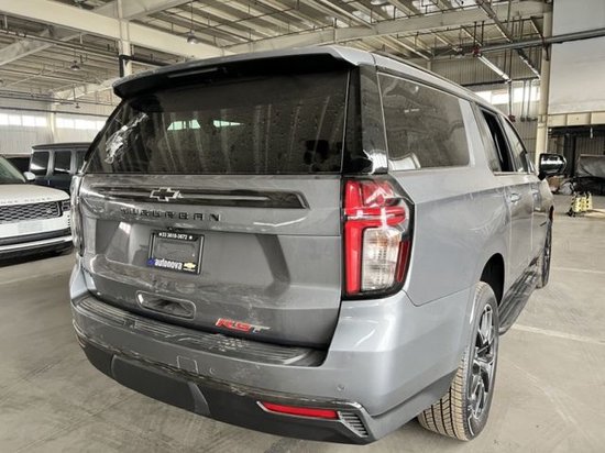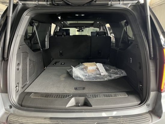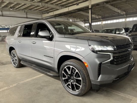 新款雪佛兰suburban外观造型设计还是以方正风格为主,车头横纹镀铬进气格栅气场不输凯迪拉克凯雷德 ,两侧更狭长的LED矩阵大灯光源很犀利,搭配小獠牙日行灯装饰,车头侵略感比较强。车身侧面属于很明显的全尺寸SUV身材,新一代产品比老款车型轴距增加了105mm,C柱后方超大面积侧窗与凯雷德如出一辙,搭配隔音隐私玻璃和平坦的车顶行李架,沉稳的气场很突出。