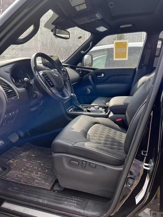 22款加版英菲尼迪QX80Luxe 白/黑 配置:Luxe豪华版,5.6自然吸气 V8发动机,400马力,413磅英尺的扭矩,盲点警告(BSW),牵引能力-8500磅,8座,天窗,真皮加热方向盘,远程遥启,车身镀铬套件,20寸锻造铝合金轮毂,12.3英寸信息触摸立屏,半苯胺菱形格座椅,主动式头枕,二排船长座椅带中央扶手,BOSE音响,17个扬声器,双头枕后排娱乐,随速转向助力,预碰撞警告,盲点监测,车道偏离警告,驾驶员注意警告,雷达测距,环车影像,无线充电,车载蓝牙,前排座椅通风加热,前排座椅记忆,全模式四驱,自动牵引力调节,Apple CarPlay和 Android Auto