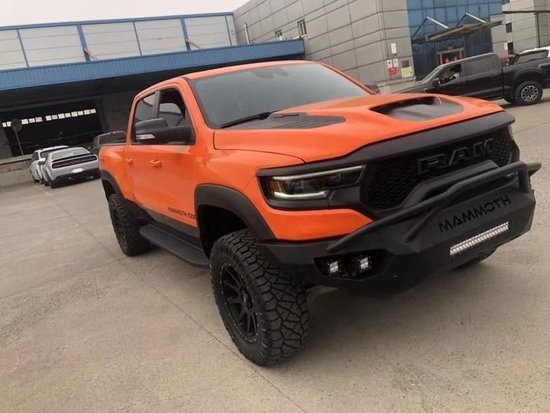2023款道奇霸王龙猛犸象天津港现车销售 国六排放,全国上牌。23款霸王龙猛犸象使用增压 6.2 升 HEMI® HELLCAT V8 发动机,最大马力1014匹,最大扭矩1314牛·米。Ram 1500 TRX 已成为世界上最快、最强大的量产半吨级皮卡。扭矩方面,TRX 以4.9秒的0至100公里/小时的速度提供了新的性能水平,以及最高时速190 公里/小时。