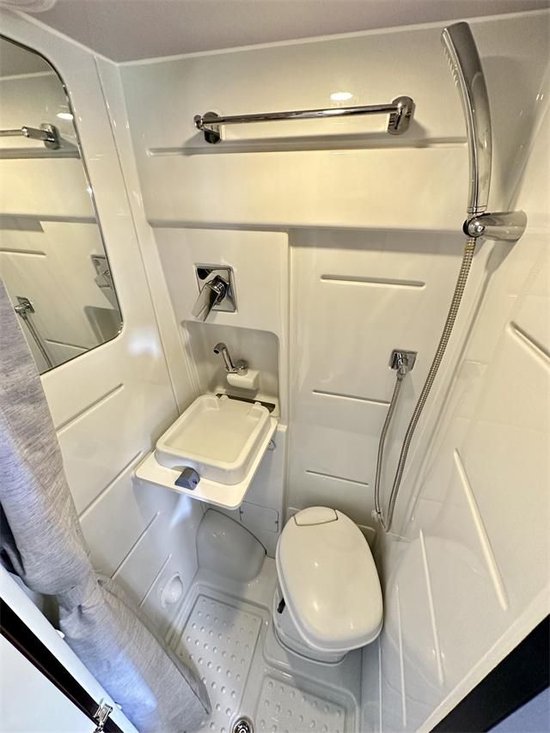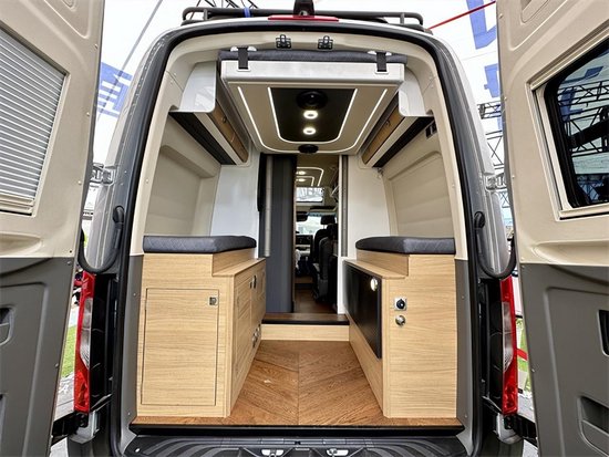 车内厨房区域虽然不大,却功能齐全,电磁炉随车带走,随时用不受区域限制,房车专用50L冰箱,和前面的扶手冰箱加起来就是75L的容量了。还有行车驻车两用的分体直流变频空调,和进口伟巴斯特独立燃油加热器,配置全面的很。
