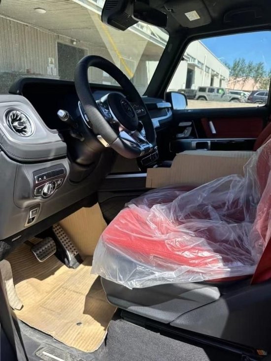 23款奔驰G63内饰方面,奔驰的设计绝对可以用惊艳来形容,无论是经典车型还是超豪华车型甚至是入门级的豪华车上,奔驰的内饰都会让你眼前一亮,当然了这也是奔驰的一个特色。所以这部全新的G63在内饰的表现上也是情理之中的,但是细节上还是有些小小的意外。这种感觉是打开车门的瞬间就能够感受到的。首先仪表和中控屏依旧是采用了同一款液晶屏显示,第一感觉就是科技感爆表。而其他方面例如方向盘,空调出风口,挡杆等等的设计充满设计感。