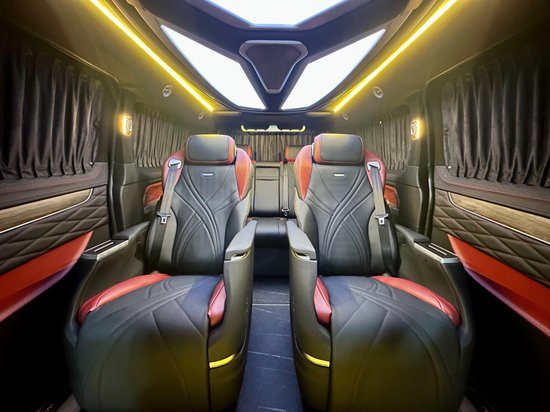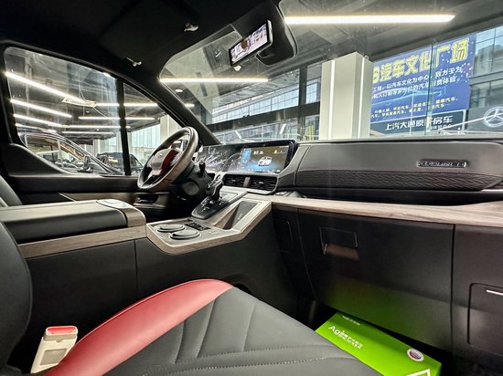 整车 是经典的2+2+3的布局,中间两个很豪华的航空大座椅,通风,加热,按摩,旋转的功能全部都有,座椅是真皮包覆,乘坐的舒适感很强,座椅旁边也带有无线充电。