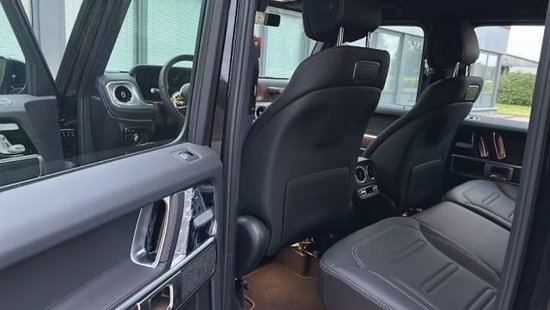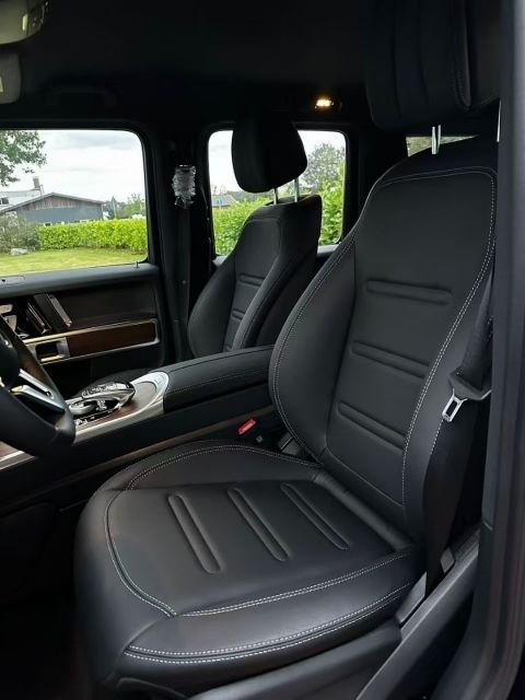 23款欧版奔驰G500 (配置|询价) 无豪车消费税,不改车架号 黑/黑 标配:汽油4.0T,422马力,V8发动机,610扭矩,9速,四驱,主副驾真皮电动,前后排加热,金属漆,悬挂前双叉臂后整体桥,黑色护板,一键启动,液晶仪表,越野屏幕,大灯清洗,后隐私玻璃,LED头灯和尾灯,外后视镜电动加热,主驾侧自动调暗,感应雨刷,定速巡航,纳帕皮革多功能方向盘,具有 64 种颜色和 10 个色区的环境照明,备胎罩,自动气候控制,前排座椅和头枕的记忆功能,无框内镜,宽屏驾驶舱,主动车道保持辅助,前后电眼,倒影,胎压控制,18轮,100升大油箱,球形拖车钩,胡桃木内饰装饰(仪表台下方、门板、扶手)