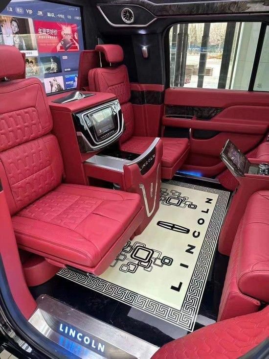 2023款林肯领袖一号后排的老板的航空座椅支持3档按摩,座椅的通风,加热,多段式的腿托,柏林之声的音响让你在出行还是商务的时候,都可以舒缓压力放松心情带来天籁般的感受,氛围灯可以多种颜色的切换,全看老板心情,后面前后双电视可以看任何大片,电动窗帘,电动的桌板还有咖啡机都是标配,老板座椅对面还有两个可以折叠的秘书座椅,整车采用4+2的布局,不需要使用可以电动收回,座椅中间的屏幕可以控制后排所有的娱乐设施,不仅有窗帘,玻璃也能一键雾化,保证隐私,法国的柚木地板也是非常的昂贵。